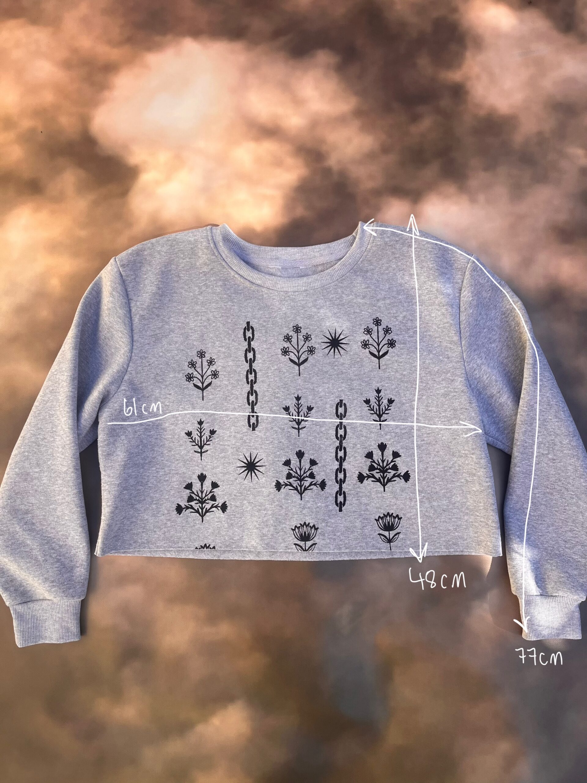 Printed by hand with eco-friendly ink. Wash gently and hang dry. <3